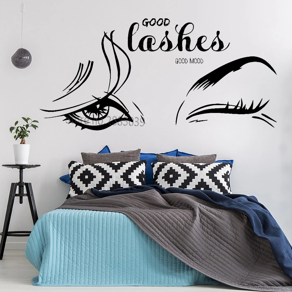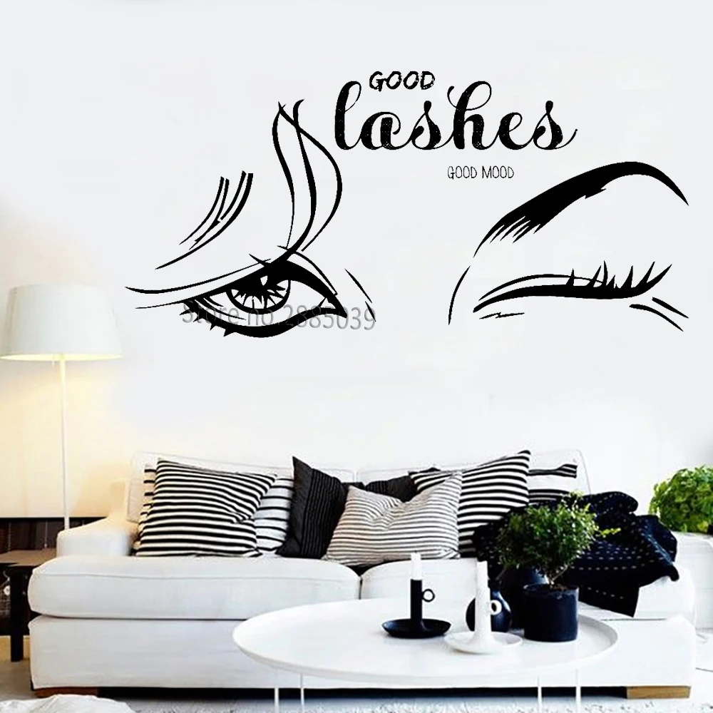 HIGH QUALITY Good Lashes Good Mood Beauty Eyelashes Wall Decal Woman Beautiful Lashes Wall Sticker Beauty Salon
