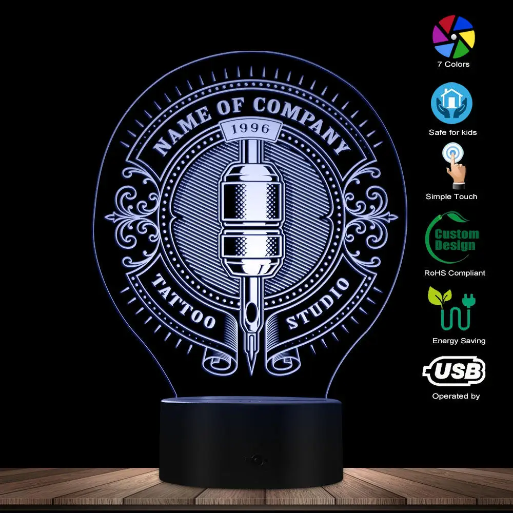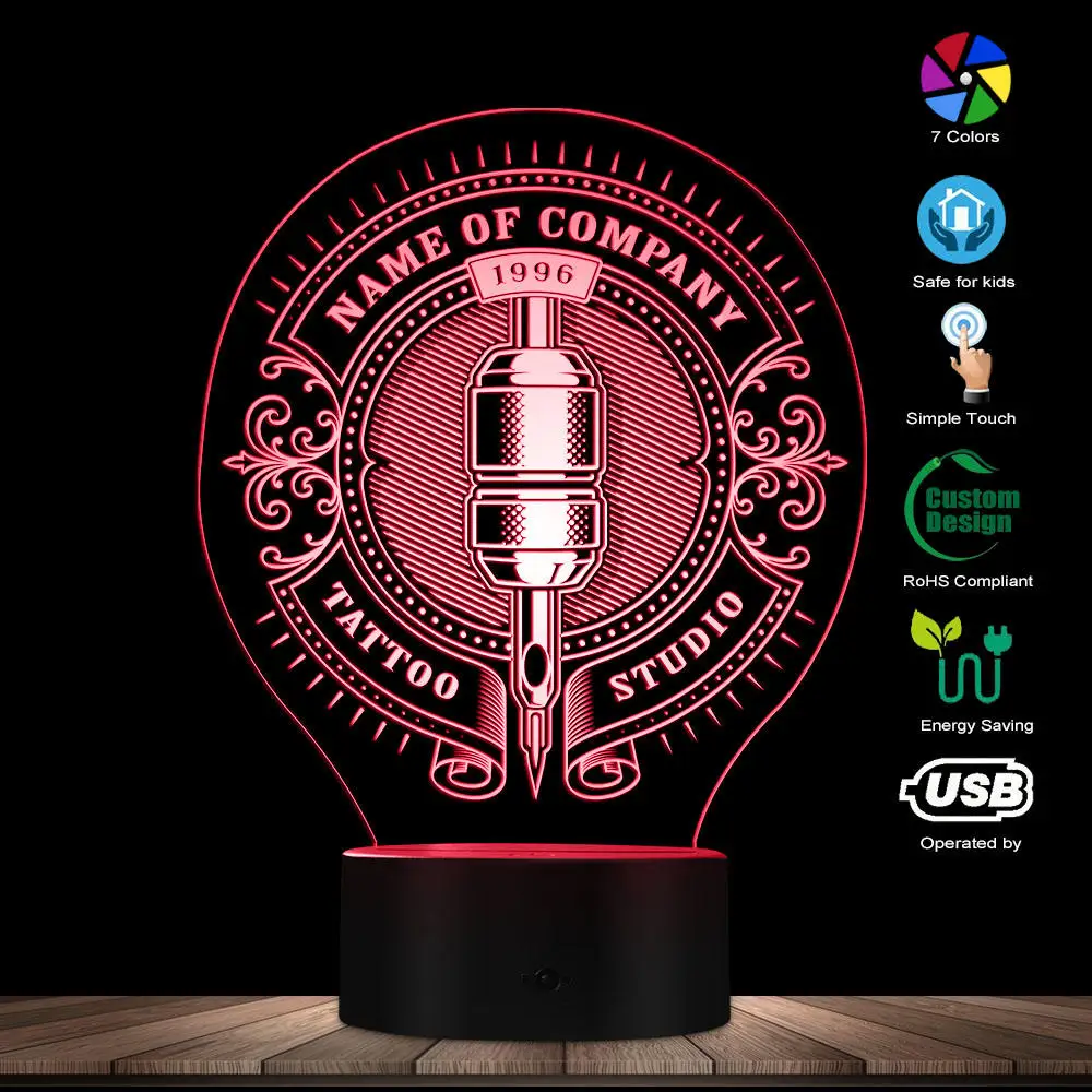 Your Custom Name Tattoo Studio 3D Optical illusion Lamp Tattoo Machine Personalized Tattoo Salon Sh